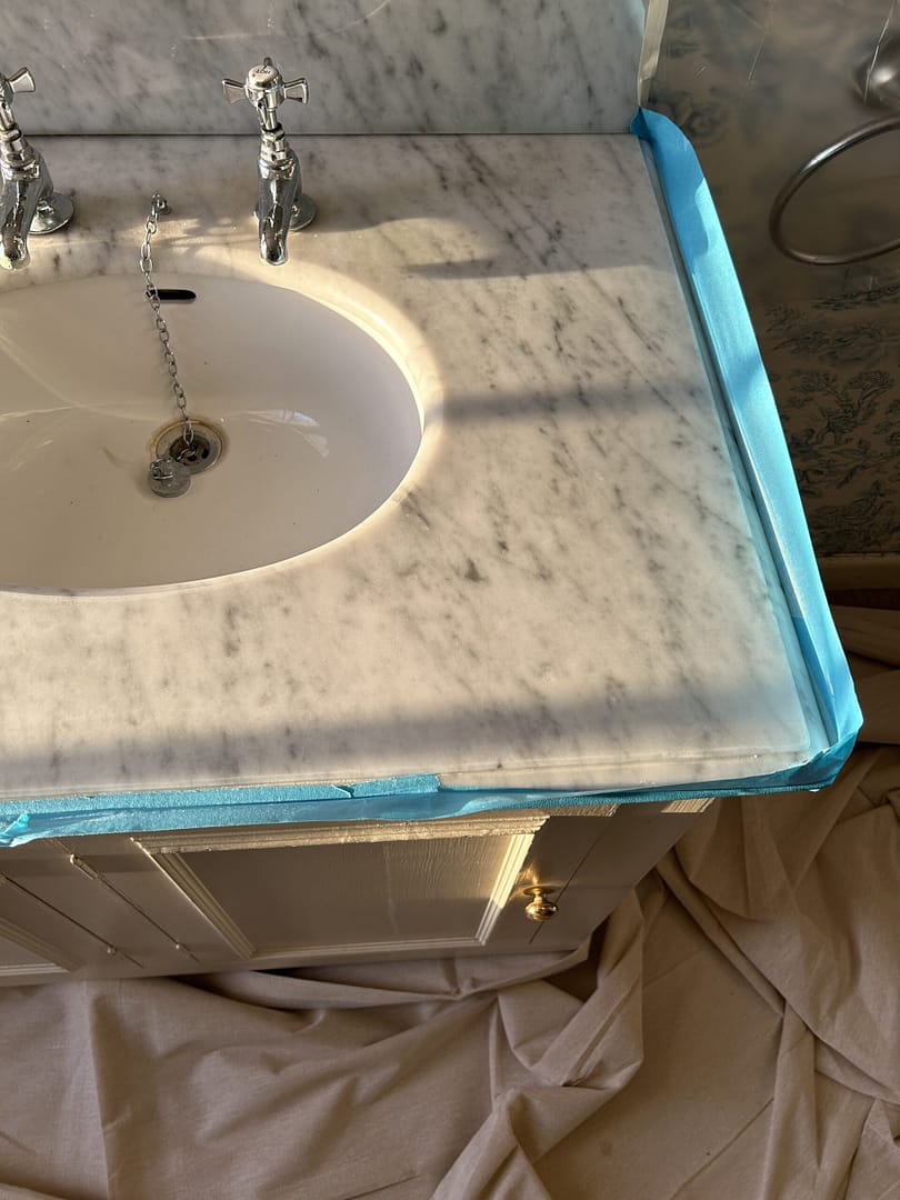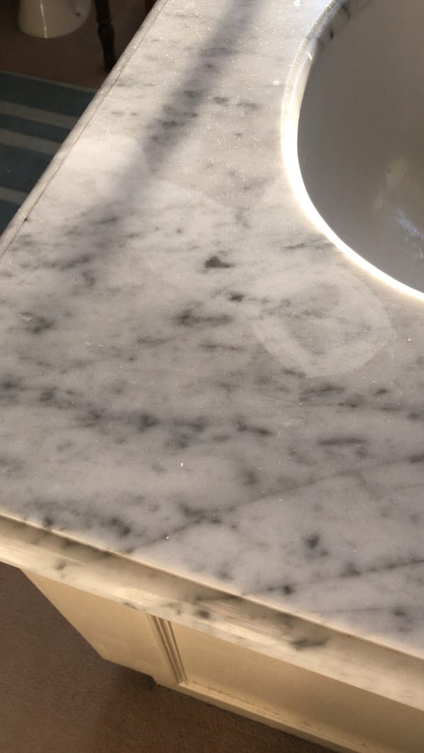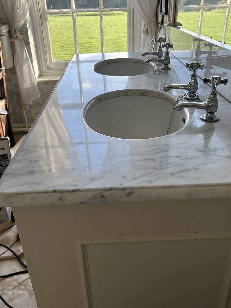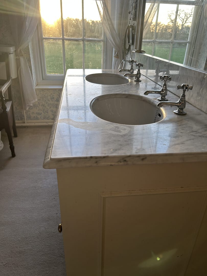 The black sinks are Spanish Nero Marquina Limestone. They were part of a complete bathroom restoration we completed in Wiltshire. The sinks easepcially had lots of damage from products and residues. We completed a restoration of the sinks, walls and floor. The sinks were dull and had lost their shine.